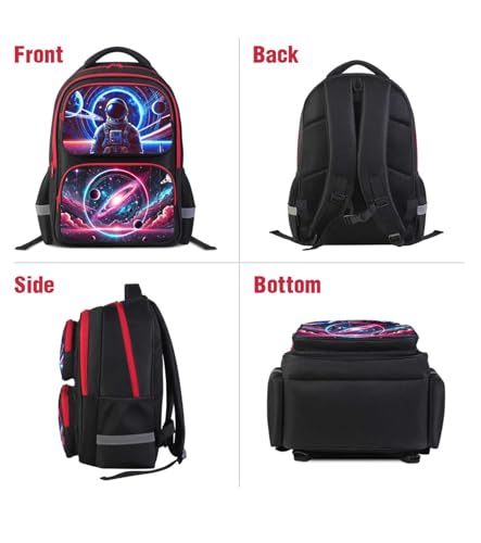 Astronaut Space Backpack Set for Boys Girls, Kids Bookbag Combo with Lunch Box Pencil Case for Elementary Middle School, Adjustable Straps Schoolbag for Age Children 6–18 4
