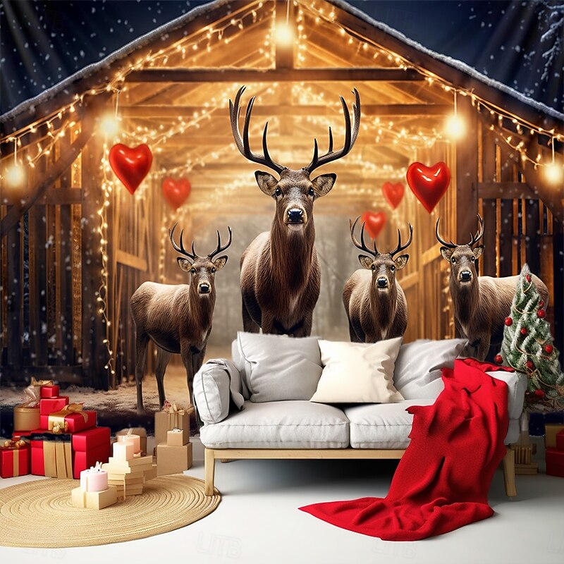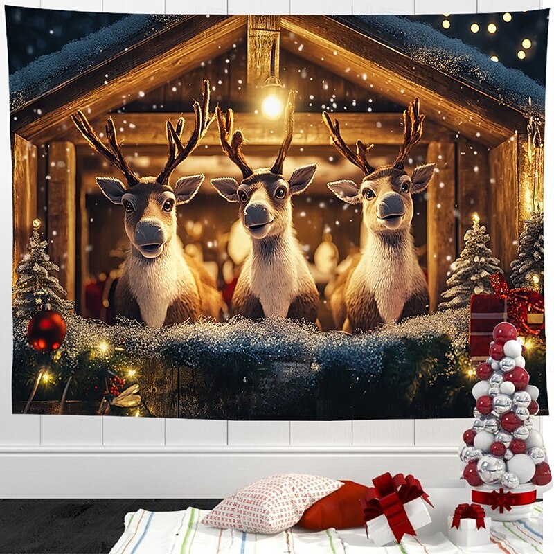 Christmas Decorations Hanging Tapestry Wall Art Xmas Deer Farmhouse Large Tapestry Mural Decor Photograph Backdrop Blanket Curtain Home Bedroom Living Room 1