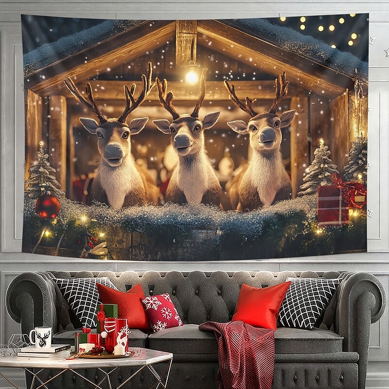 More information about Christmas Decorations Hanging Tapestry Wall Art Xmas Deer Farmhouse Large Tapestry Mural Decor Photograph Backdrop Blanket Curtain Home Bedroom Living Room