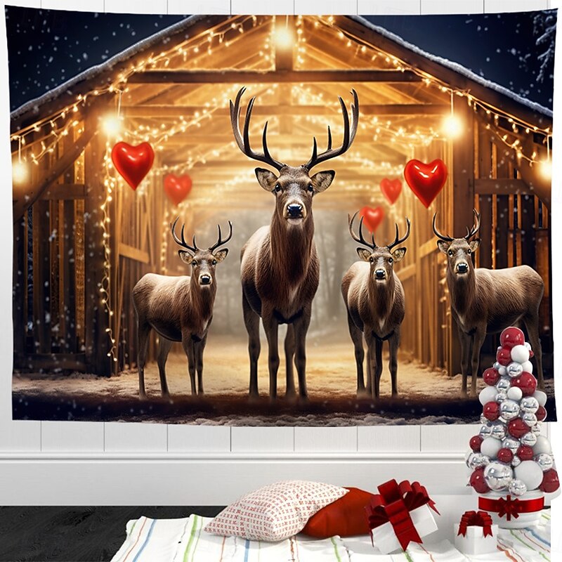 Christmas Decorations Hanging Tapestry Wall Art Xmas Deer Farmhouse Large Tapestry Mural Decor Photograph Backdrop Blanket Curtain Home Bedroom Living Room 13