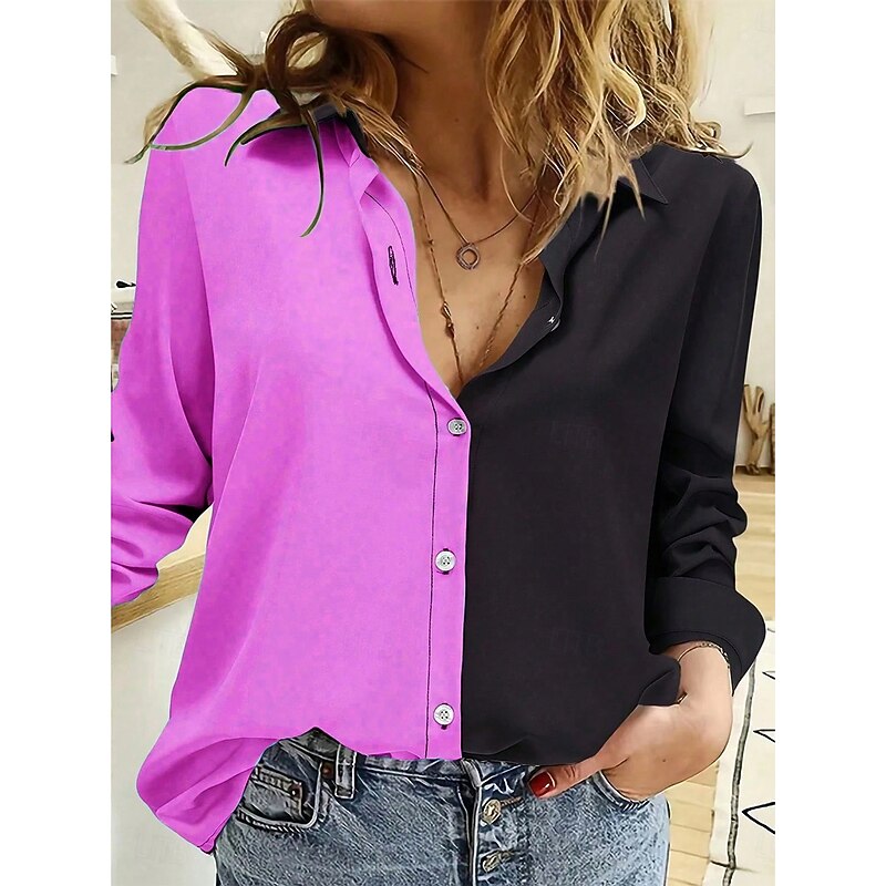 More information about Women's Shirt Button Down Tunic Shirt Collar Long Sleeve Solid Color Vintage Stylish Casual Regular Tops Work Daily s Print Pink Red Blue Purple Green Spring Fall Winter