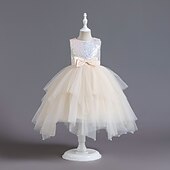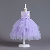 More information about Kids Girls' Party Dress Solid Color Sleeveless Short Sleeve Special Occasion Princess Polyester Mesh Party Dress Summer Spring kids Champagne Pink Purple