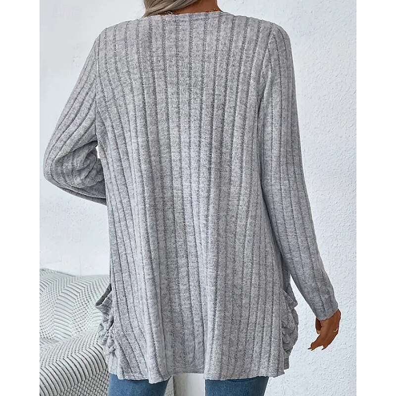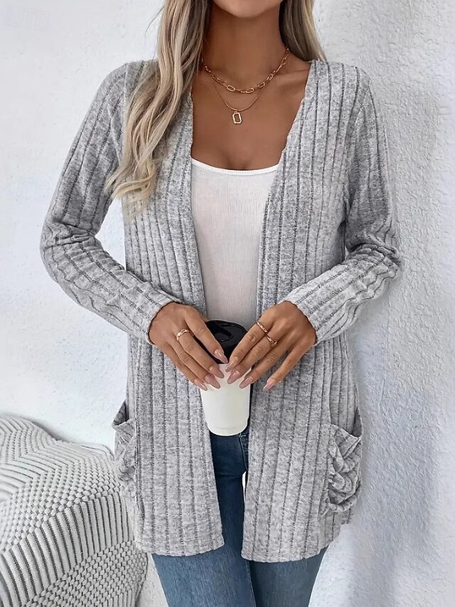 More information about Women's Cardigan Casual Solid Color Cable V Neck Pocket Knitted Long Sleeve Regular Tops Knit Holiday Going out Weekend Gray Fall
