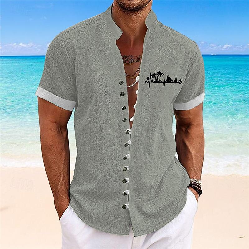 Men's Palm Tree Tropical Plants Summer Hawaiian Shirt Aloha Shirt Printed Shirts Short Sleeves Shirt Standing Collar Hawaiian Resort Outdoor Vacation Going out Blue Green Gray S M L 7