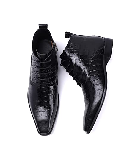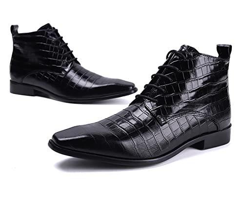 Santimon Ankle Chukka Plaid Genuine Leather Plain Toe Lace-Up Zipper Fashion Boots for Men Comfort Formal Dress Shoes 6