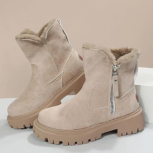 More information about Women's Fashionable Patched Design Zipper Boots, Women Winter Shoes Plush Warm Snow Boots Ladies Casual Flat Short