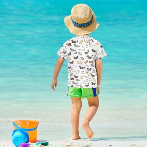 ALAZA Kids Rash Guard Boys Toddler Swim Shirts Short Sleeve Cat Stick Figure UPF 50+ 3T 5