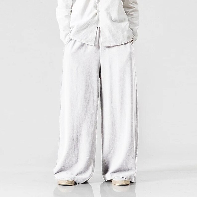 Men's Linen Pants Trousers Summer Pants Beach Pants Elastic Waist Wide Leg Flowy Plain Comfort Outdoor Daily Going out Hip-Hop Yoga White Yellow 18