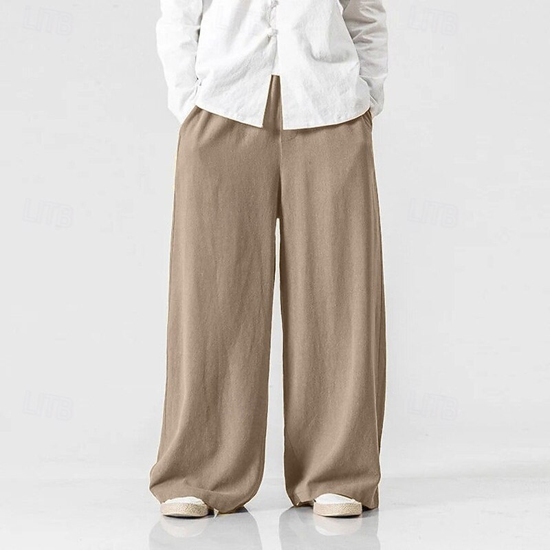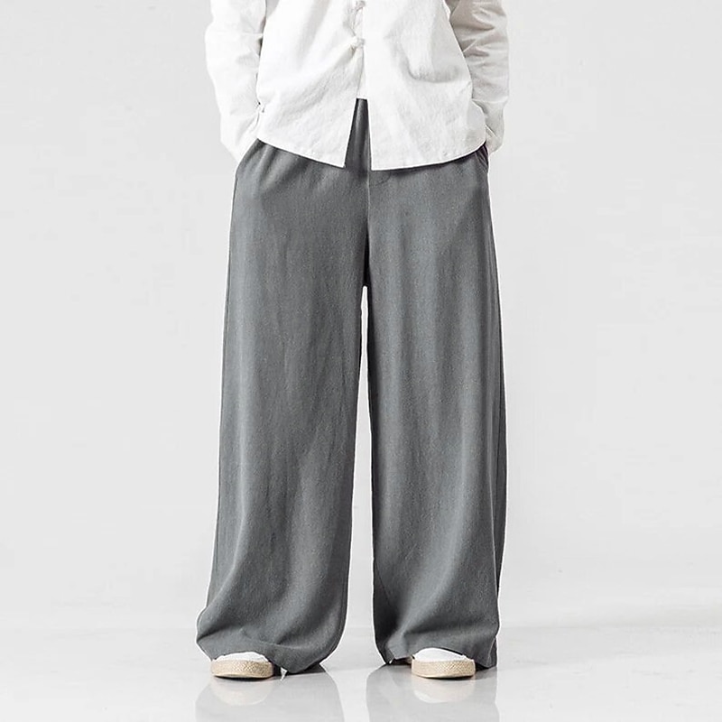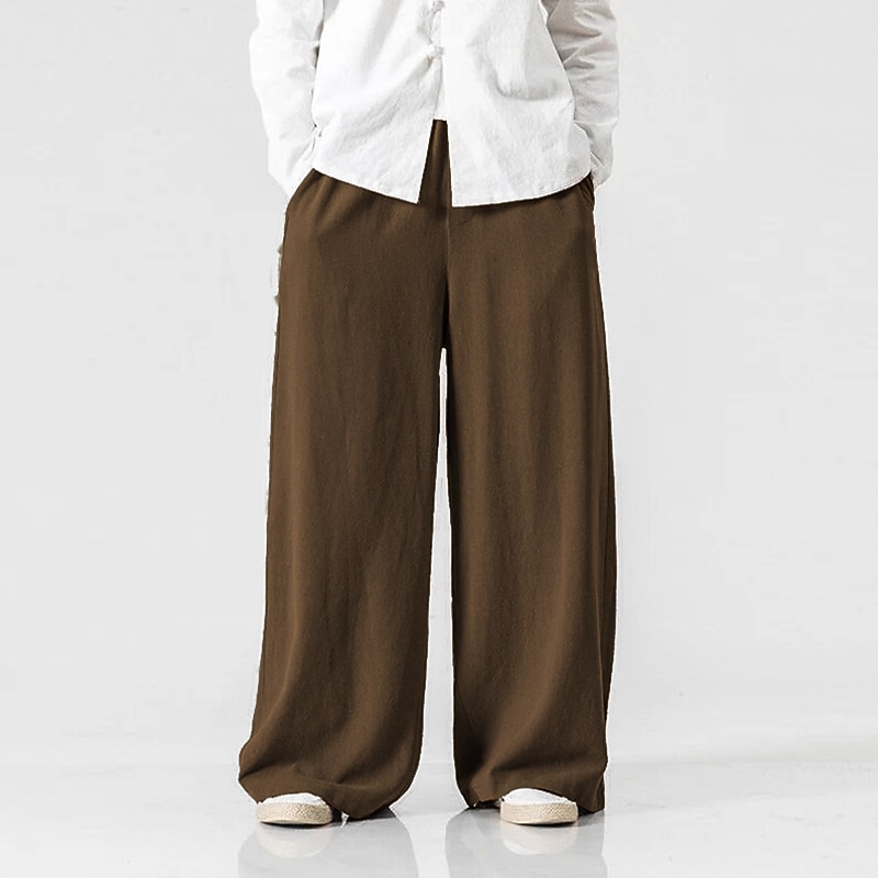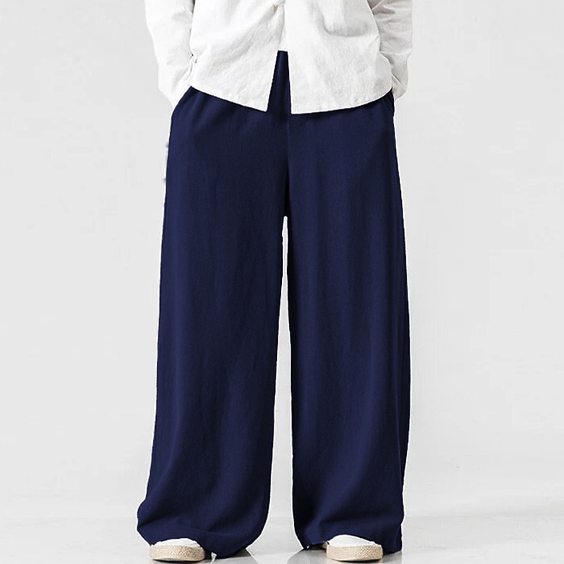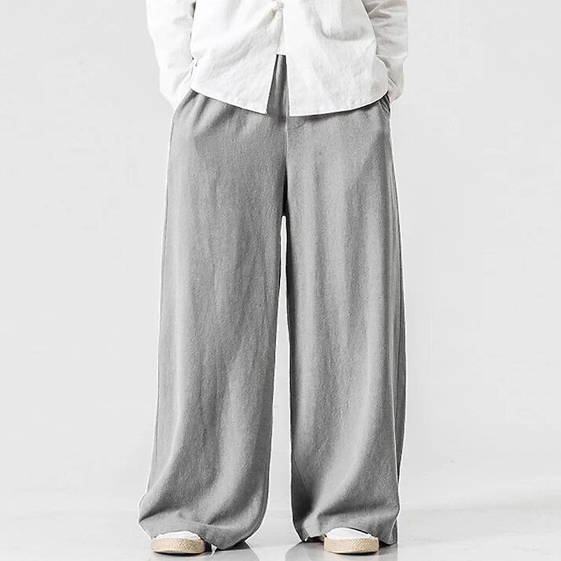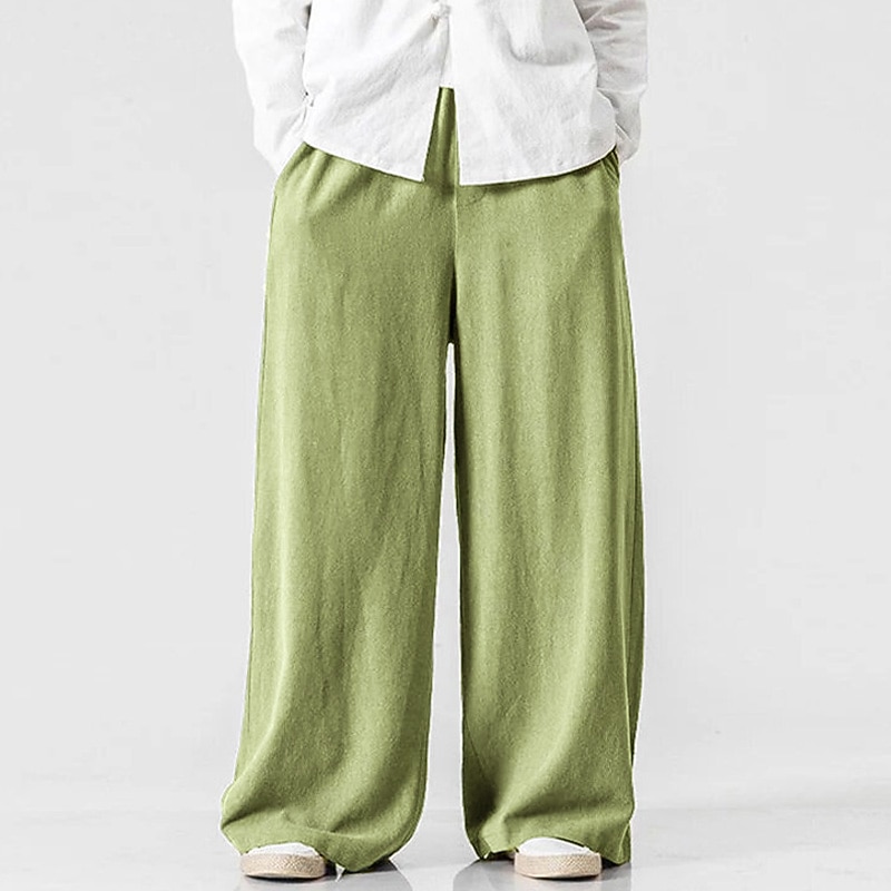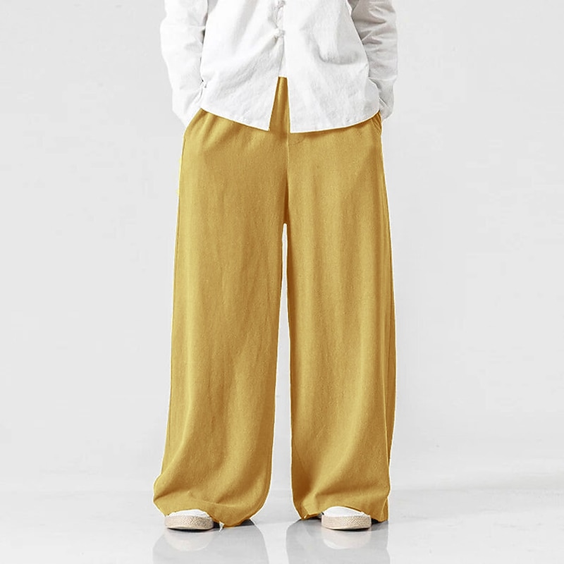 More information about Men's Linen Pants Trousers Summer Pants Beach Pants Elastic Waist Wide Leg Flowy Plain Comfort Outdoor Daily Going out Hip-Hop Yoga White Yellow