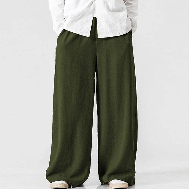 Men's Linen Pants Trousers Summer Pants Beach Pants Elastic Waist Wide Leg Flowy Plain Comfort Outdoor Daily Going out Hip-Hop Yoga White Yellow 20