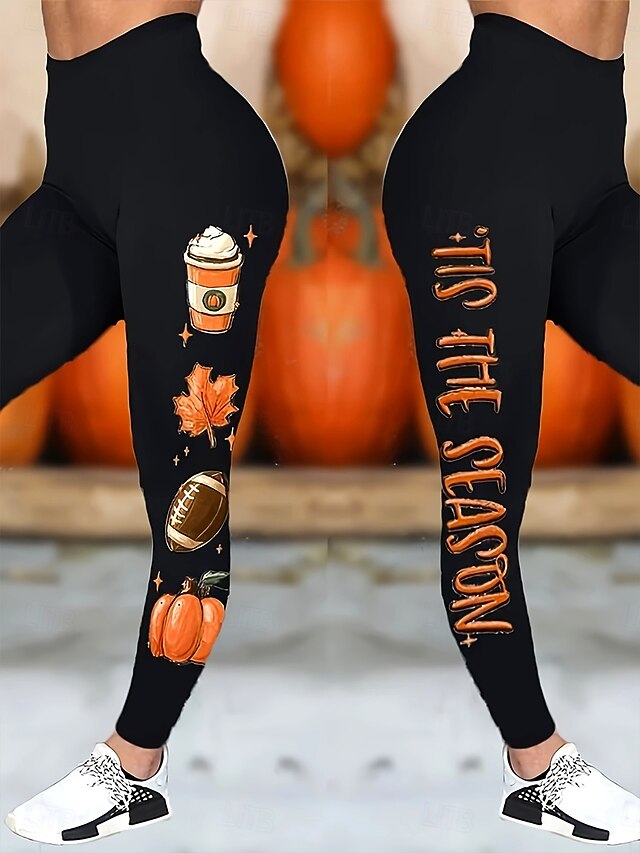 More information about Women's Leggings Vacation Vintage Fashion Full Length High WaistPantsHalloween Graphic Pumpkin Letter Printing Soft Breathable High Elasticity Outdoor Vacation Street milk white Orange Spring Fall