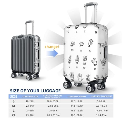 • Crafted From Thick, Elastic Material, The Sign Language Alphabet Print Jbyjbx Suitcase Protector Fits Snugly Over Your Luggage. This High Elasticity Ensures That The Cover Remains Tightly Closed During Transit, Safeguarding Your Suitcase Against Accidental Openings And Potential Damage.