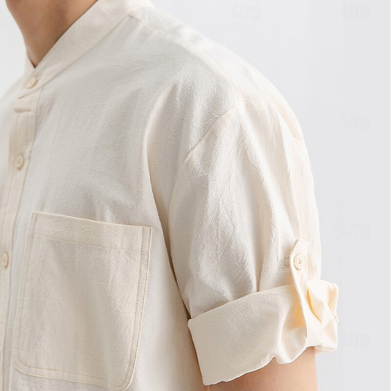 $30.99 - Men's 100% Cotton Collarless Shirt Black White Light Grey Army Green Beige Short Sleeve Tab Solid Color Standing Collar School Formal Buttons Clothing Apparel Elegant Vacation Vintage Tropical 2025. Shop for cheap Men's Elite Shirts online? Buy at lightinthebox.com on sale today!
