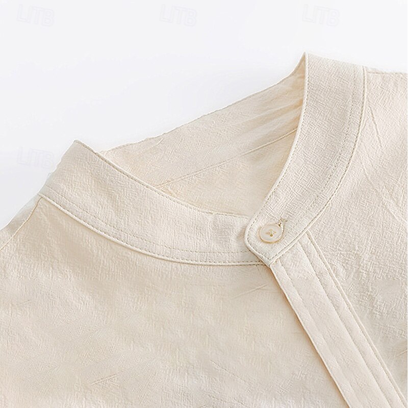 More information about Men's 100% Cotton Collarless Shirt Black White Light Grey Army Green Beige Short Sleeve Tab Solid Color Standing Collar School Formal Buttons Clothing Apparel Elegant Vacation Vintage Tropical