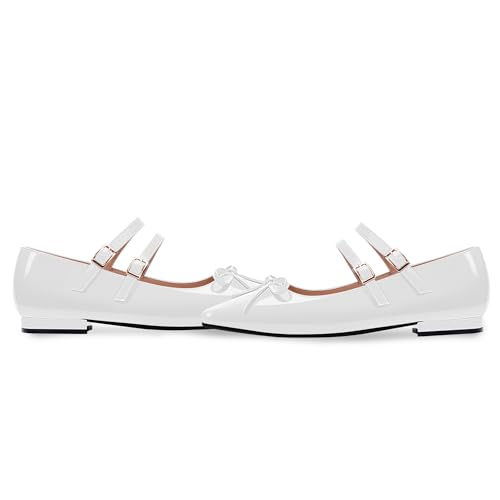 More information about Women's Bow Square Toe Ankle Strap Mary Janes Flat Patent Leather Comfortable Shoes