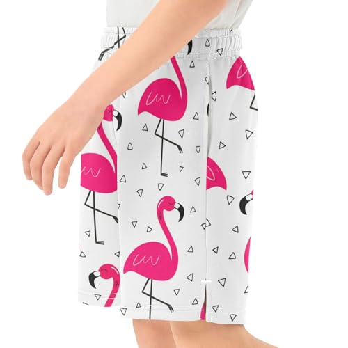 J JOYSAY Flamingo Triangle Shapes Bright Boys Athletic Shorts Kids Youth Casual Shotrs with Pockets Elastic Waistband 6