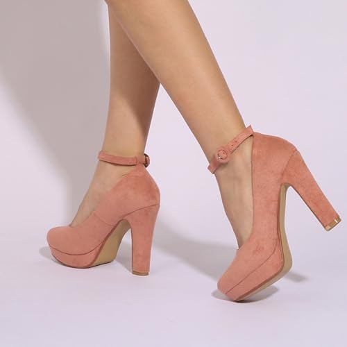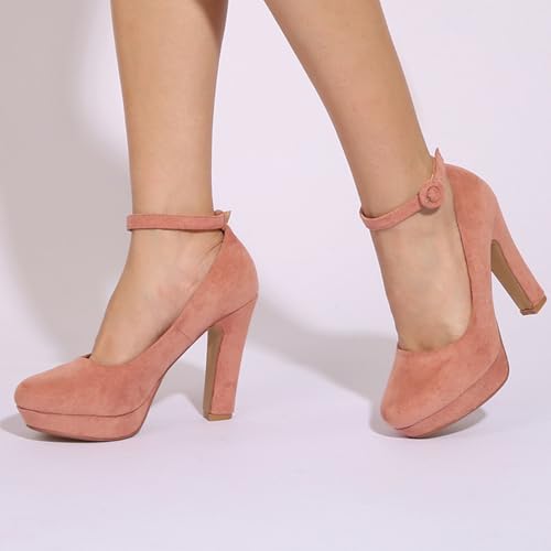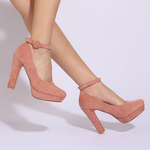 More information about Women's Suede Ankle Strap Platform High Chunky Heel Pumps Fashion Classic Closed Round Toe Comfortable Non-Slip Dress Pumps Super High Heel Prom Party Wedding Shoes