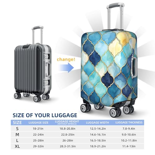 • Luggage Covers Size: Four sizes of luggage covers available; Small: fits 18-21 inch suitcase; Medium: fits 22-24 inch suitcase; Large: fits 25-28 inch suitcase; Xlarge: 29-32 inch suitcase; Please measure your suitcase before purchasing, only the luggage cover is included, the suitcase is not !!!!