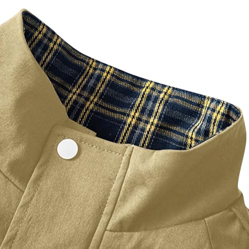 More information about Men Plus Size Zipper Cargo Windbreaker Jackets Stand Collar Casual Coat Long Sleeve Plaid Outdoor Outerwear