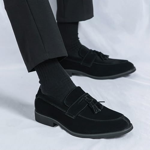 Men's Suede Leather Tassel Decorated Penny Loafers Lightweight Breathable Round Toe Slip-On Low Block Heel Business Dress Shoes for Work Office Daily Wear 6