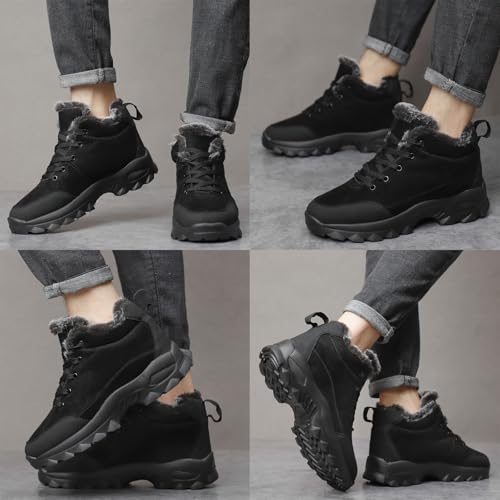 Men's Suede Winter Warm Lug Sole Snow Ankle Boots Comfortable Lightweight Waterproof Non-Slip Round Toe Lace-up Fluff Lined Outdoor Ankle Shoes for Cold Weather Walking Hiking 7