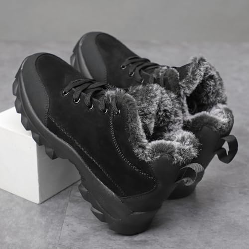 More information about Men's Suede Winter Warm Lug Sole Snow Ankle Boots Comfortable Lightweight Waterproof Non-Slip Round Toe Lace-up Fluff Lined Outdoor Ankle Shoes for Cold Weather Walking Hiking