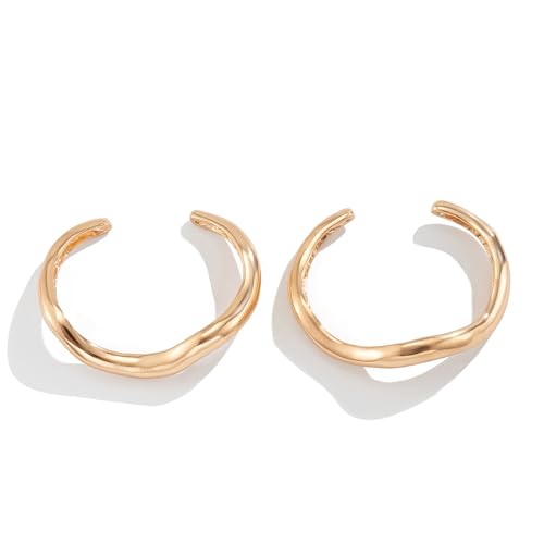 PINK TOWN Chunky Gold Bracelets for Women,2 Pcs Gold Stacking Cuff Bangle Bracelet Silver Plated Cuff Bangle Bracelets Open Wide Irregular Minimalist Bangle Jewelry 2