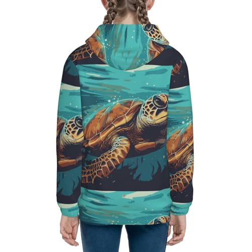 Green Turtle in Sea Water Kids Pullover Hoodies Boys Zip Up Sweatshirts Girls Athletic Clothes with Pocket 5