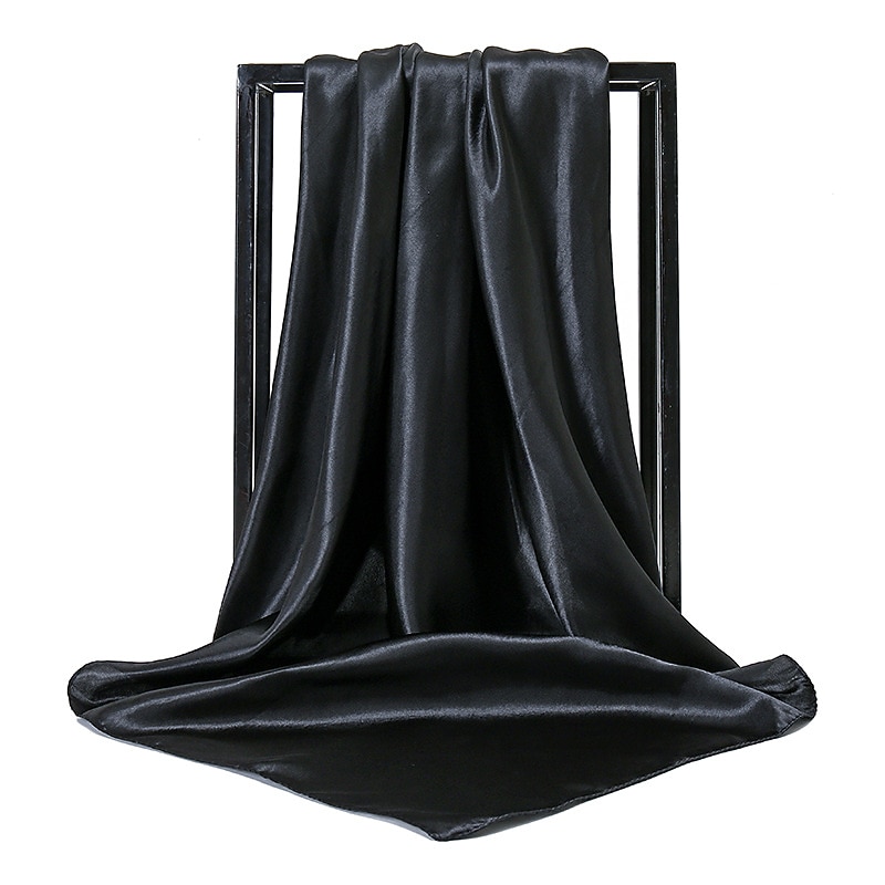 1pcs 90*90cm Solid Colors Neckerchief Hijab Scarf For Women Silk Satin Headband Hair Scarves Female Square Shawls Head Scarfs For Ladies