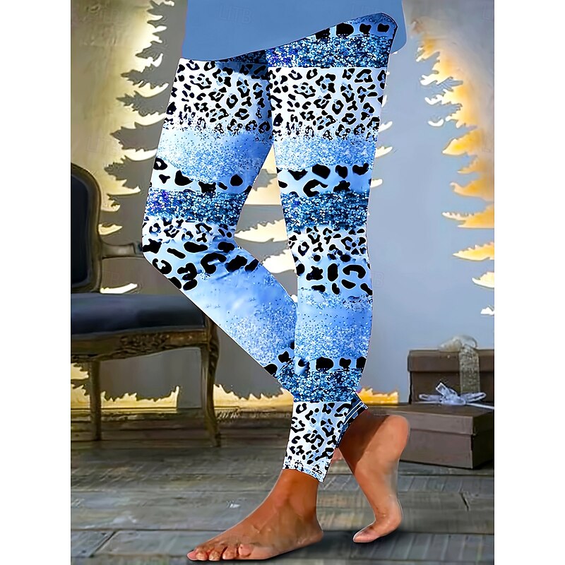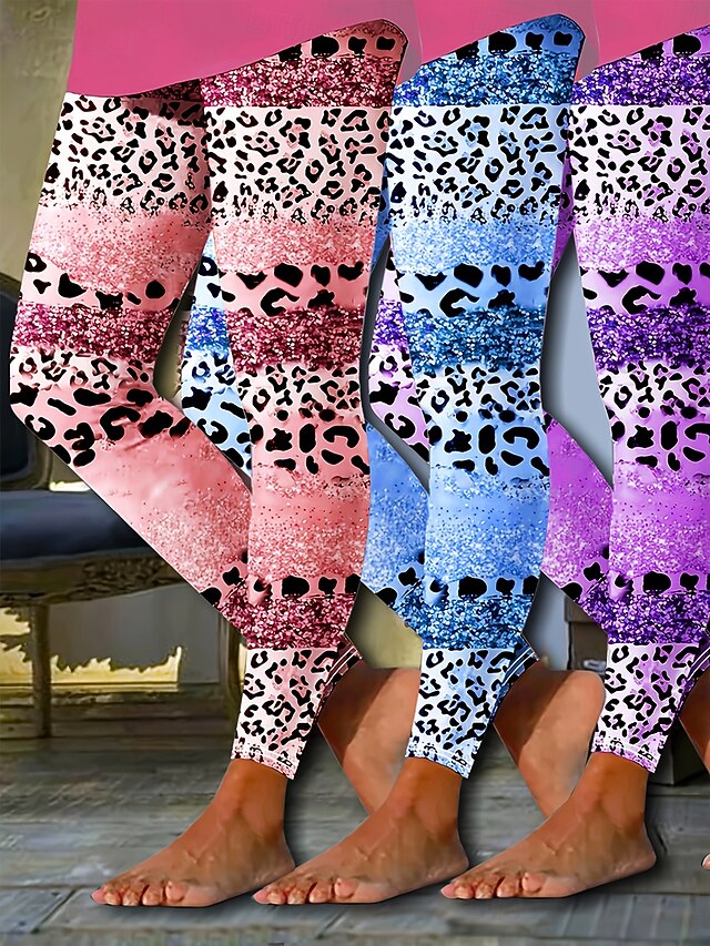 Women's Leggings Vacation Vintage Fashion Full Length High Waist Graphic Leopard Abstract Printing Thermal Warm Soft Breathable High Elasticity Vacation Street Dailywear Light Pink Violet Light Sky 8