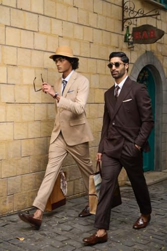 • 2 Piece Men Suit Set: The 2pcs slim fit suits for men consisting of double breasted peak lapel blazer and a classic straight leg pant. Suitable for spring autumn,winter and spring