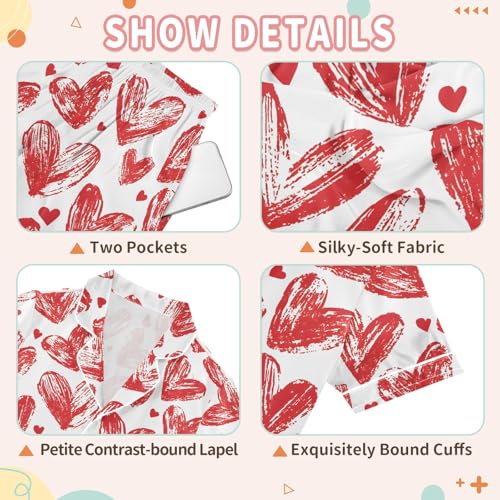 Hand Draw Red Hearts Summer Satin Pajama Set, Cute Button-Down Sleepwear Pj Set for Sleep Wears 4