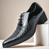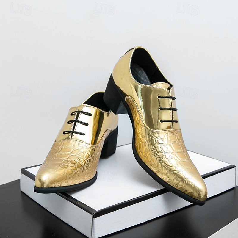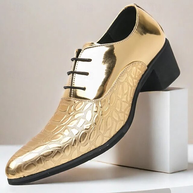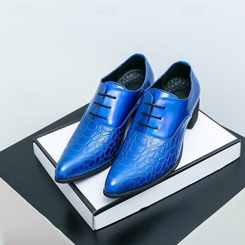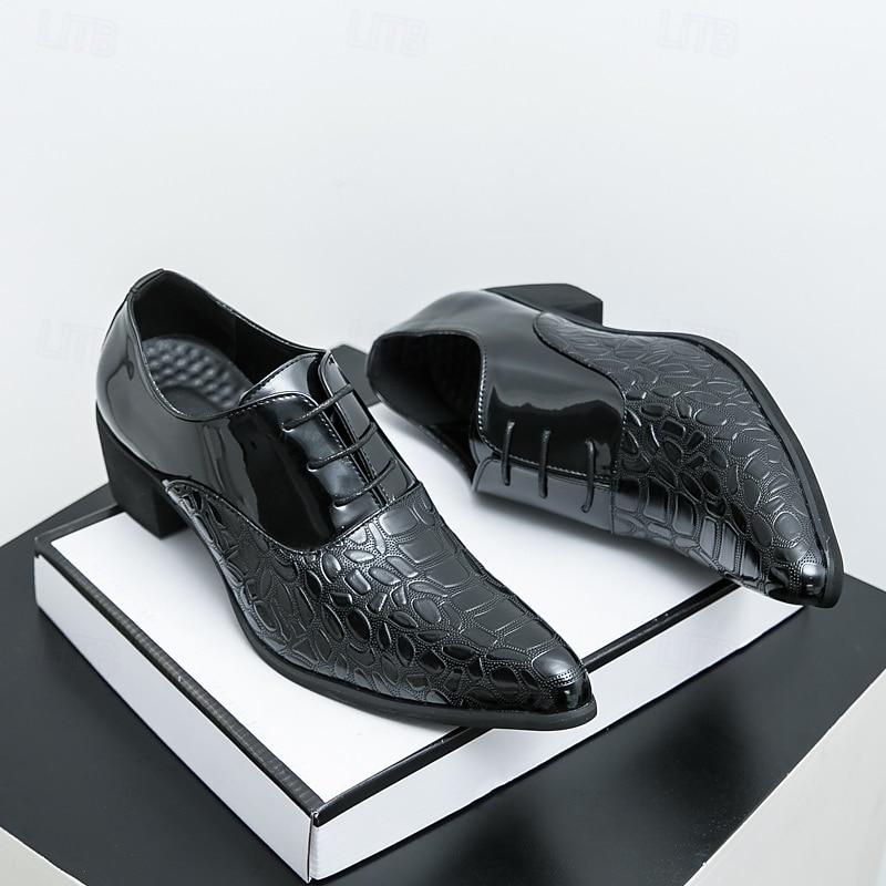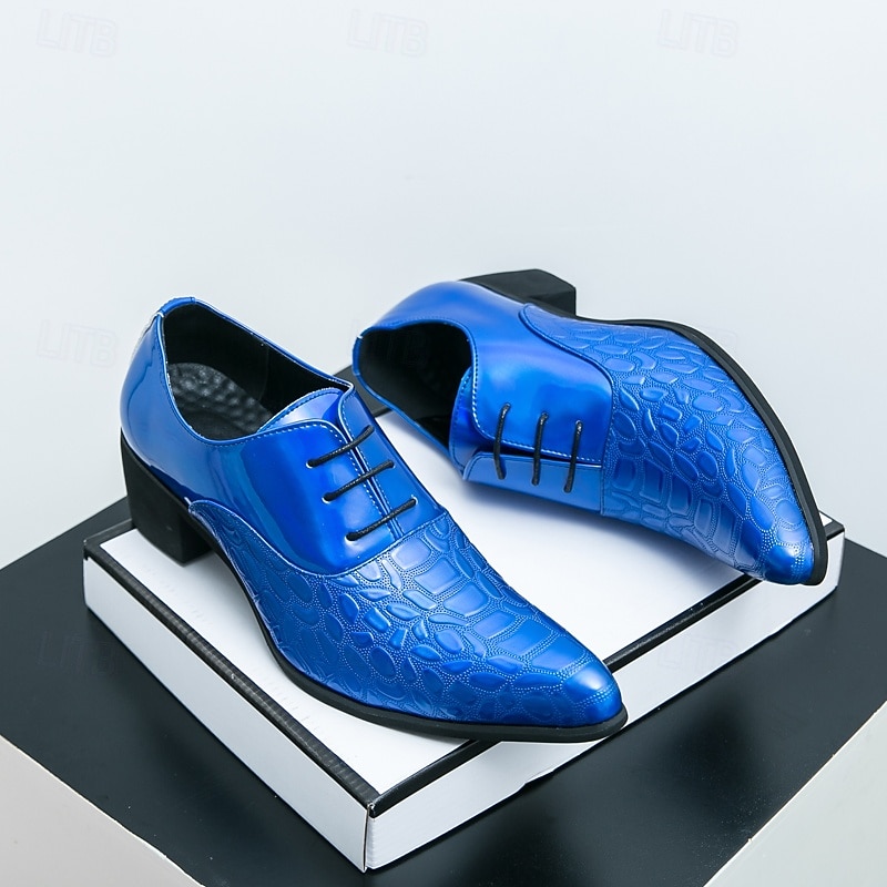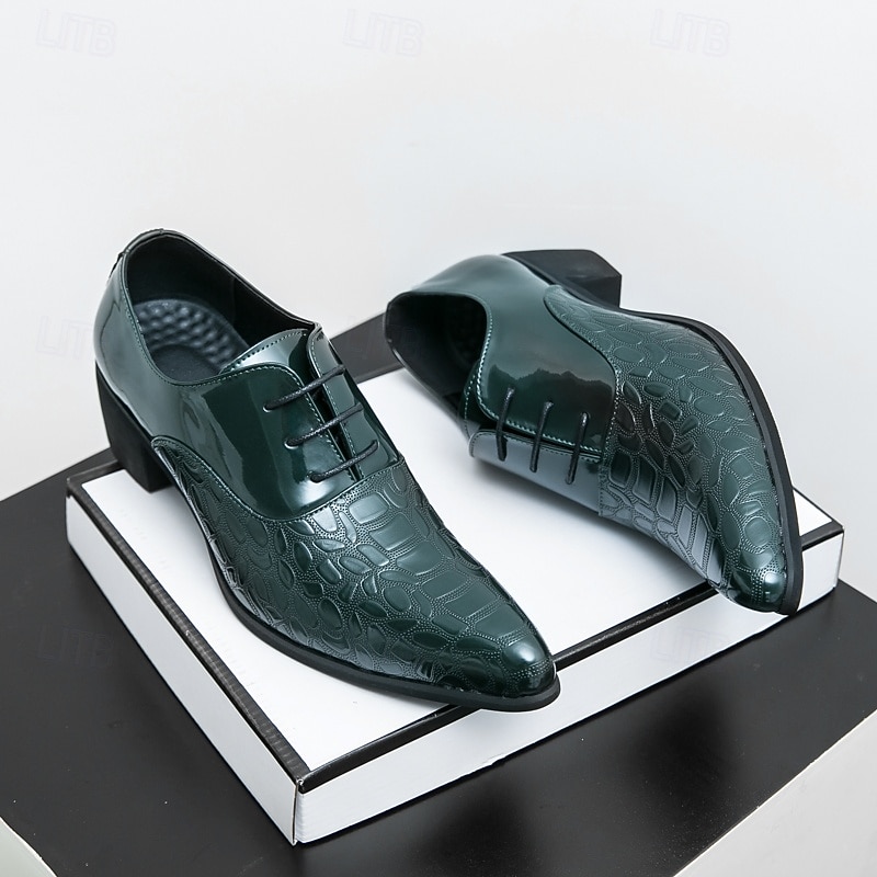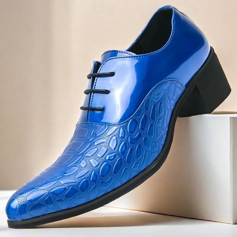 Men's Oxford Shoes - Metallic Patent Leather with Stone Texture Embossing, Elegant Formal Footwear for Men, Perfect for Weddings, Business & Special Occasions 35