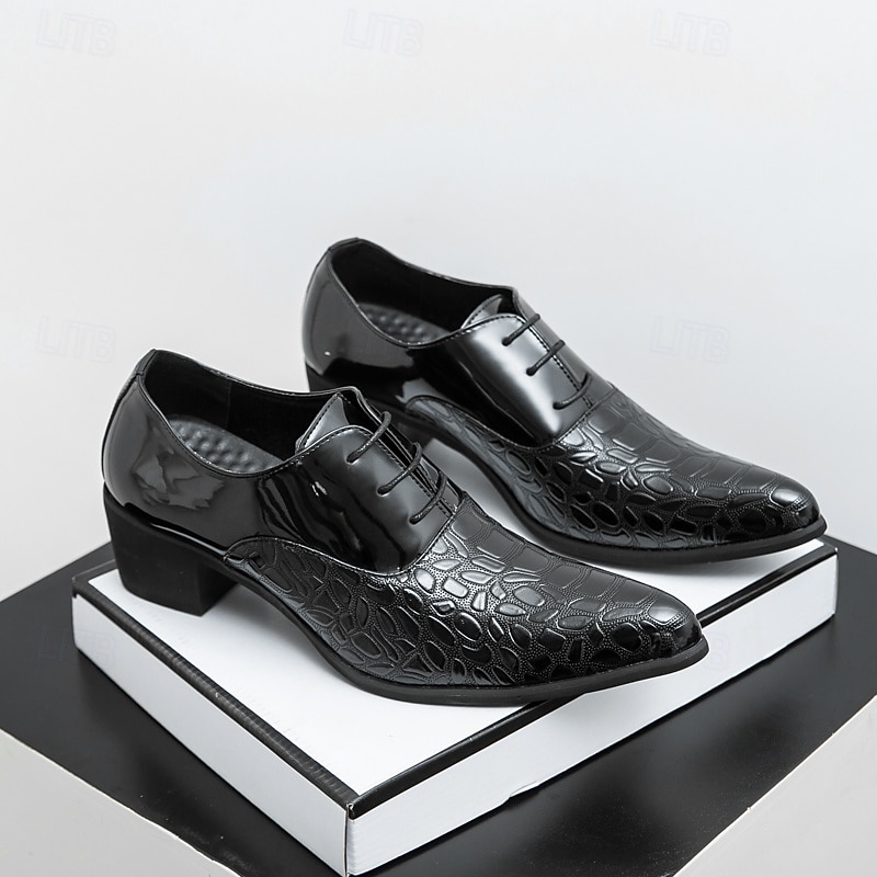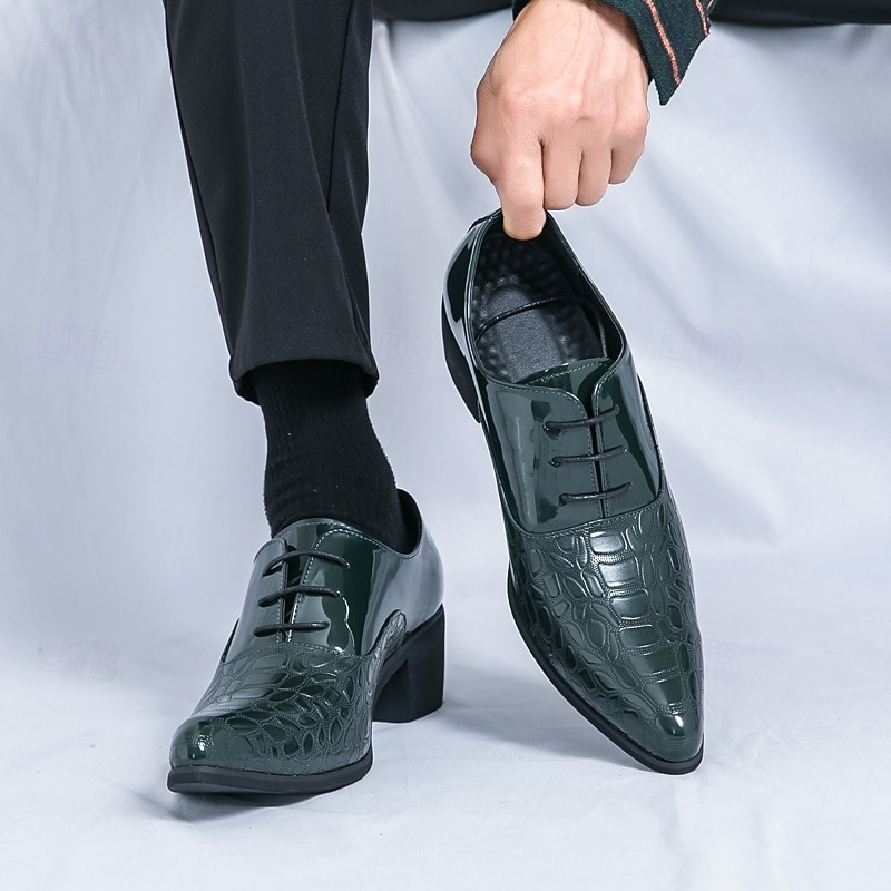Men's Oxford Shoes - Metallic Patent Leather with Stone Texture Embossing, Elegant Formal Footwear for Men, Perfect for Weddings, Business & Special Occasions 6