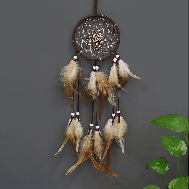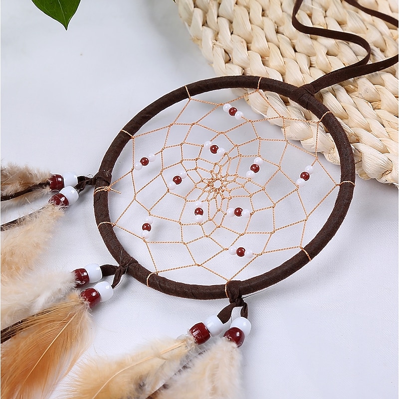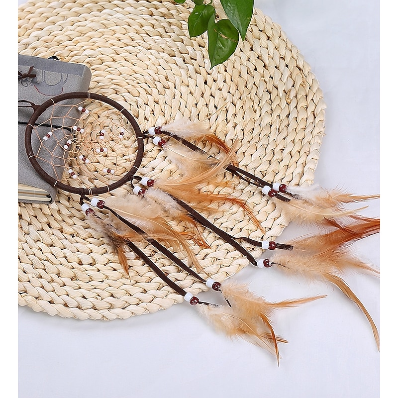 More information about Dream Catcher Flower Pattern Handmade Gift with Gradient Feather and Beaded Wall Hanging Decor Art Indian Style 55*11 cm