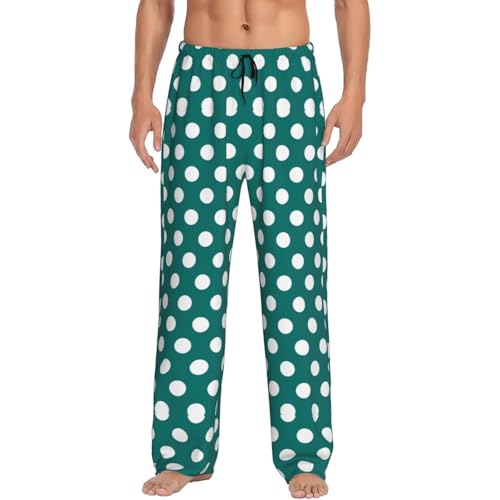 Mens Pajama Pants - Blue Green Polka Dot Print smooth Sleep Lounge Pants For Men, Casual Pj Bottoms With Pockets