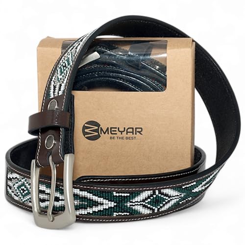 HOT ! Western Leather Cowboy Beaded Belt For Men And Women, Handmade Leather Gift.