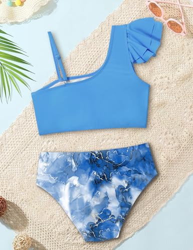 • Girls Swimsuits in Stylish Colors: Solid color bikini top is design with ruffle on one shoulder, which made it more adorable. Adjustable shoulder straps is very convenient. Paired with bottoms in different styles and patterns, such as different colors of tropical or floral style.