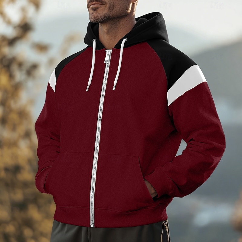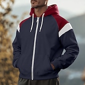 More information about Men's Hoodie Full Zip Hoodie Fleece Hoodie Black Red Navy Blue Beige Gray Hooded Plain Patchwork Zipper Sports & Outdoor Casual Daily Streetwear Cool Sportswear Spring & Fall Clothing Apparel Hoodies
