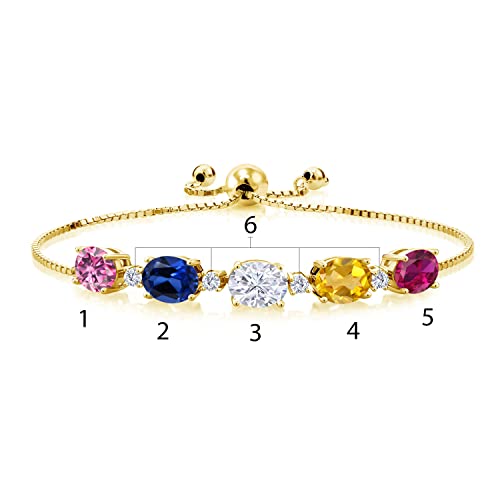 Gem Stone King 18K Yellow Gold Plated Silver Tennis Bracelet For Women | Customized and Personalized 8X6MM Oval 5-Stone Gemstone Birthstone Adjustable Bolo Bracelet For Women | Easy-On Easy-Off 4