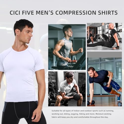 Men's Compression Shirt Short Sleeve Athletic Workout T Shirt Quick Dry Undershirts Baselayer Gym Tops 5