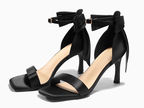 • Elegant and Sophisticated Design: These high heels for women feature an open square toe and a ankle strap adorned with a delicate bow tie back, creating a timeless and elegant look perfect for any formal occasion