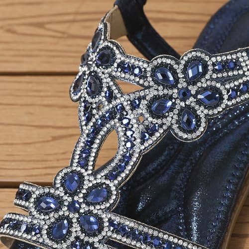 Women Rhinestone Embellished Flat Sandal High Elastic Ankle Strap Shoe Solid Textured Open Toe Sparkly Sandals