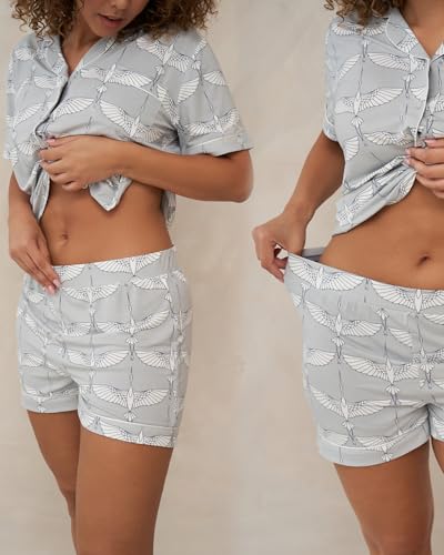 HOT ! Pop & Plum Soft Cooling Viscose Bamboo Pajamas for Women, Comfy PJs, Matching Button Up Pajama Shorts Set, Super Soft Pajamas