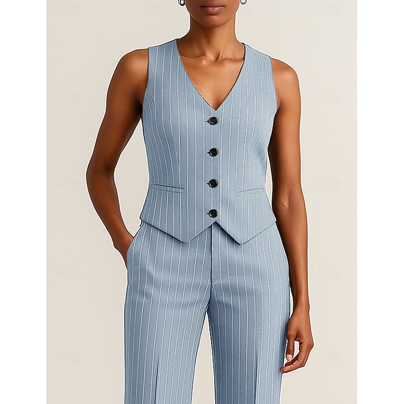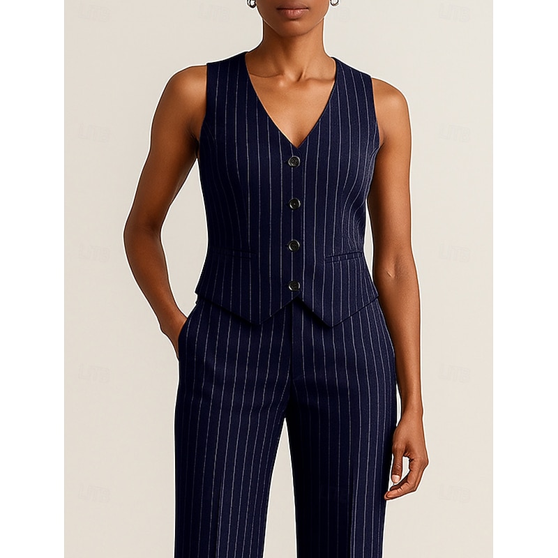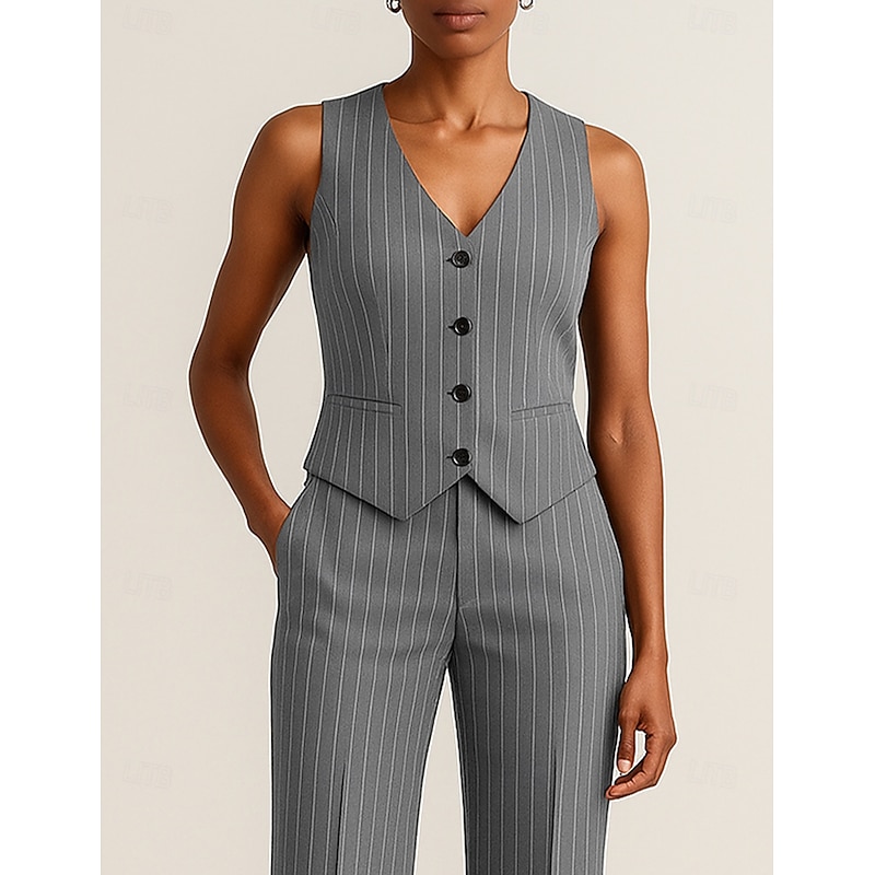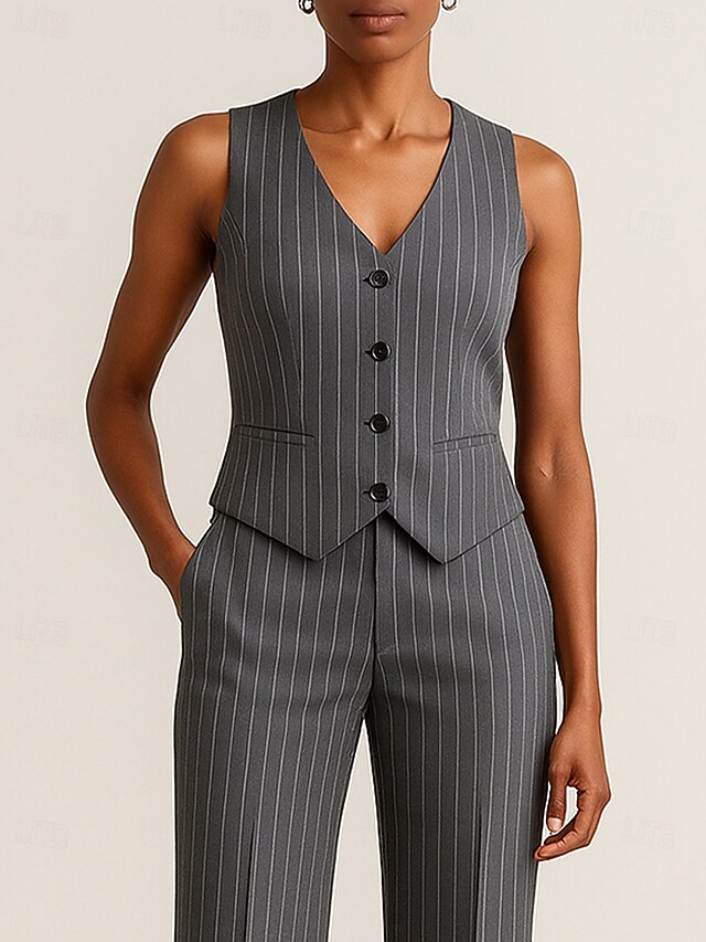 More information about Women's Suit Vest Formal Party WorkWear Elegant Pinstripe Sleeveless V Neck Single Breasted