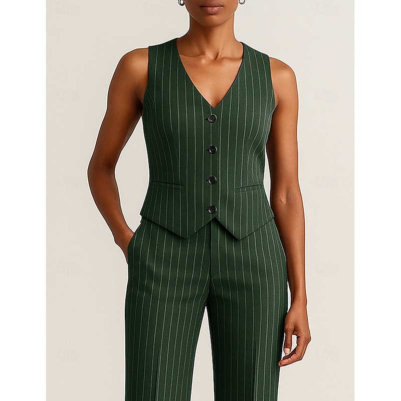 Women's Suit Vest Formal Party WorkWear Elegant Pinstripe Sleeveless V Neck Single Breasted 2