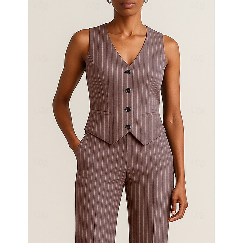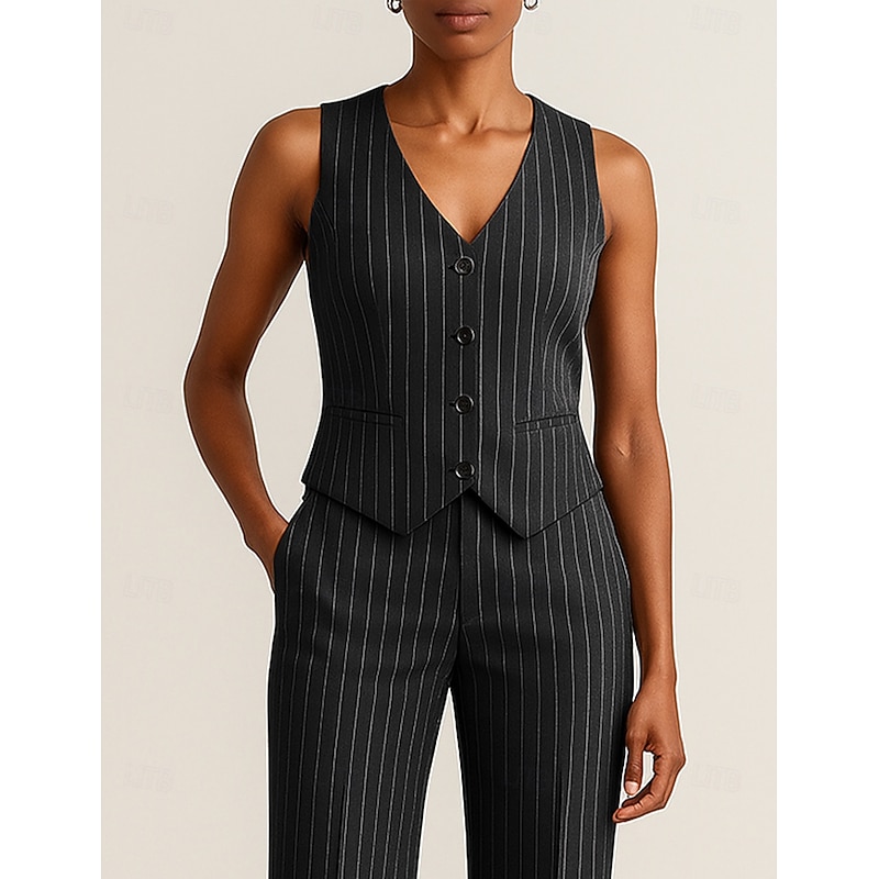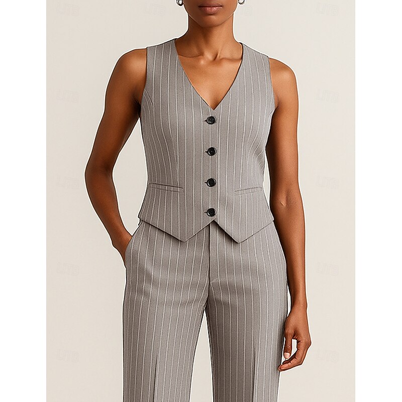 Women's Suit Vest Formal Party WorkWear Elegant Pinstripe Sleeveless V Neck Single Breasted 23