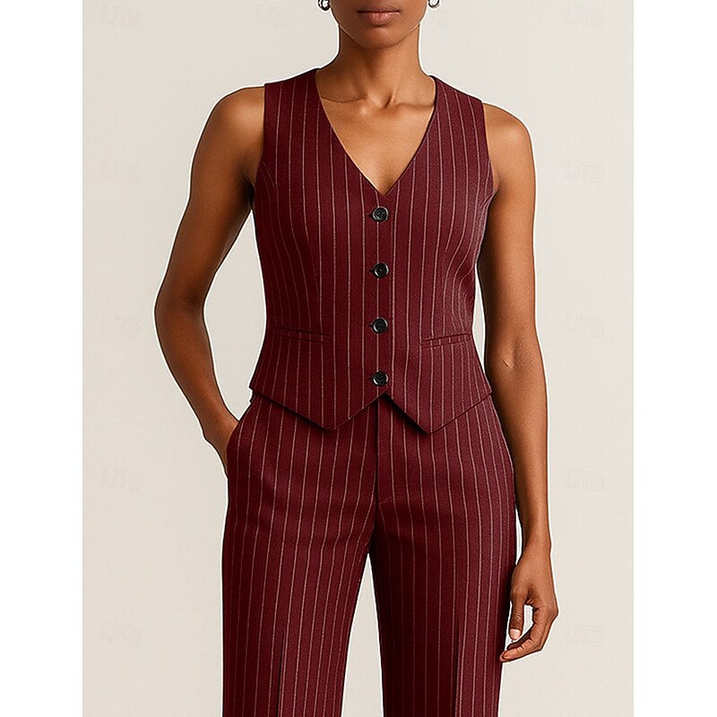 Women's Suit Vest Formal Party WorkWear Elegant Pinstripe Sleeveless V Neck Single Breasted 10
