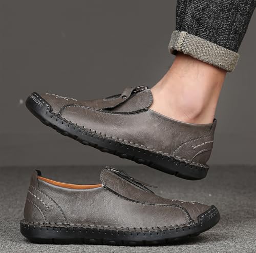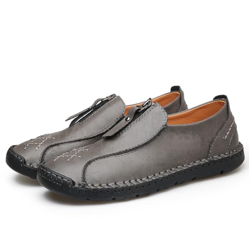 Men's Leather Loafers Slip-On Driving Penny Loafers Classic Moccasins Handstitched Zipper Design Comfort Casual Walking Shoes 7