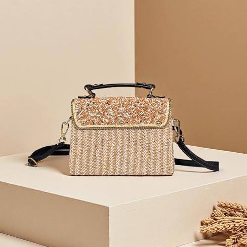 HOT ! Beaded Purses Boho Straw Purse Alt Crossbody Bag Colorful Embroidered Beads Trendy Boho Straw Beaded Purse for Beach Travel